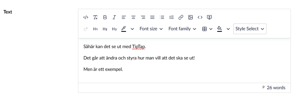 En ny trevlig bekantskap är TipTap. Det har inget med tomtar eller jul som namnet kanske antyder, utan det är en ny texteditor i backoffice!